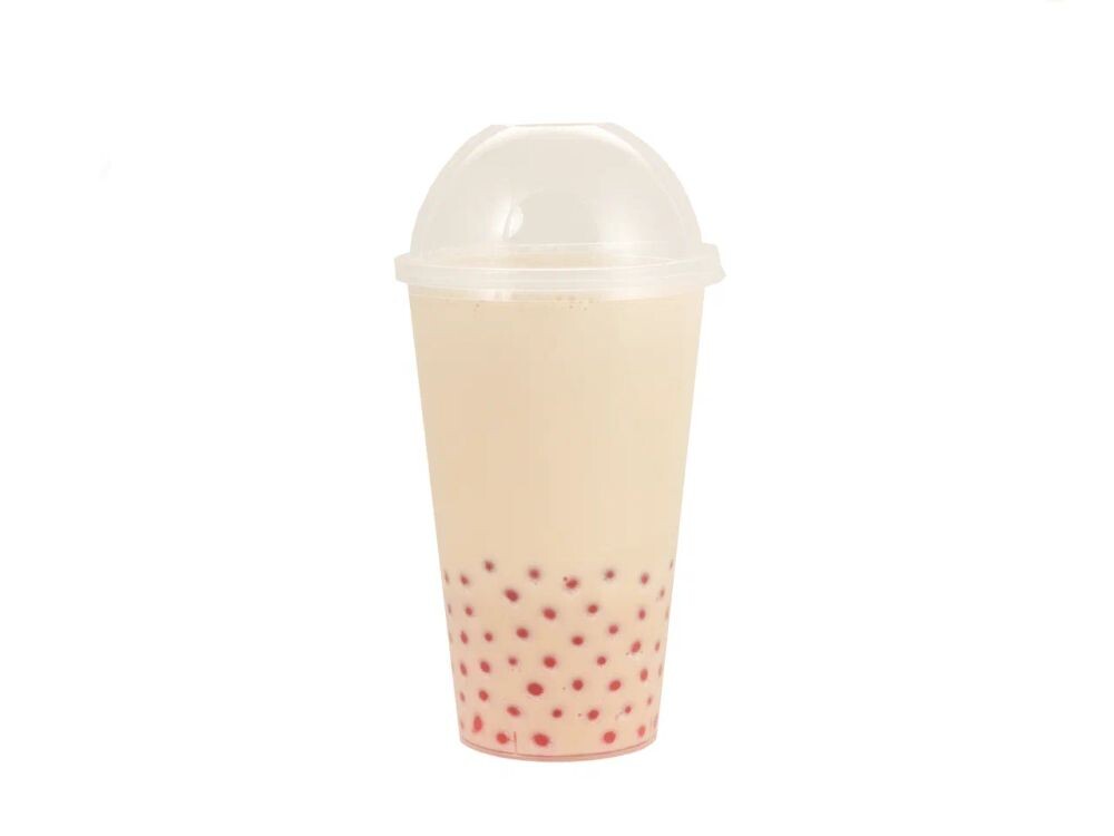 Черный/зелёный чай на выбор, молоко, бабл-шарики «Клубника», топинг «Карамельный»