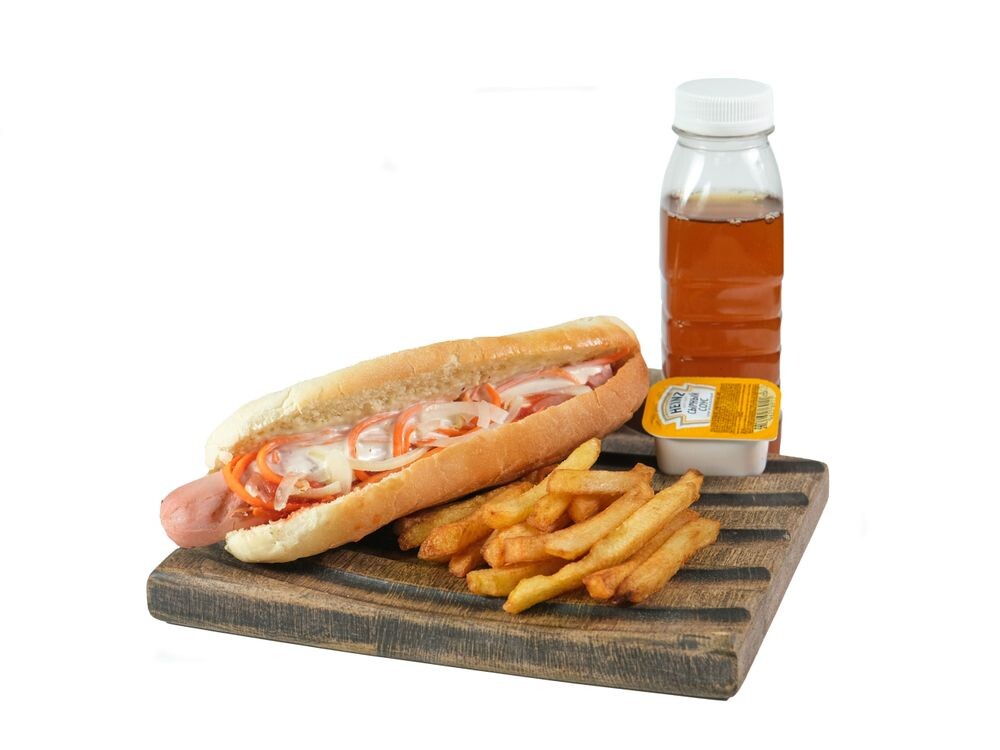 Хот-Дог Джан, Картофель Фри 100г, Компот 0.33мл, Соус Сырный