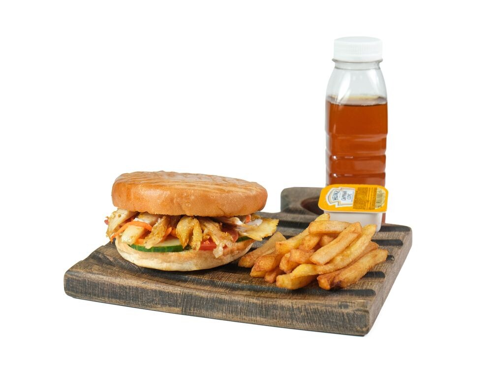 Сендвич Джан курица , Картофель Фри (100 г), Компот (0.33 мл), Соус Сырный