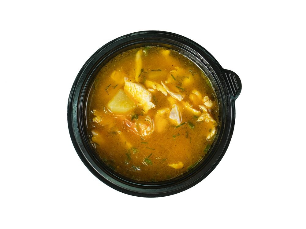 Куриное филе,картофель, морковь , лук репчатый , чеснок .