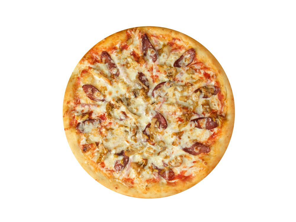 Нежный томатный соус . Моцарла укуит сердца ваших любимых начинки — сочная ветчина, насыщенная охотничья колбаса и ароматная копченая курица. Каждая порция — это гармония свежести и насыщенности, которая подарит вам незабываемые кулинарные впечатления.